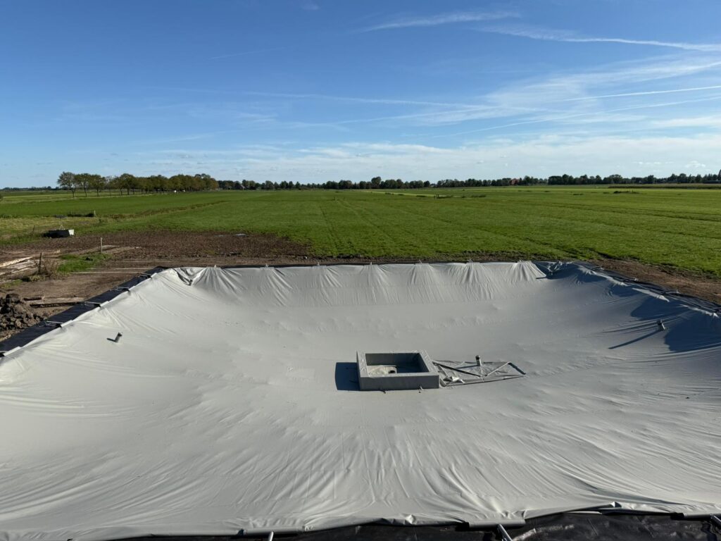 Met behulp van onze rupskraan met GPS hebben we weer een mooi project mogen afronden! Vlak bij huis hebben we het grondwerk uitgevoerd voor het plaatsen van een mestzak. Natuurlijk hebben we ook geholpen met het plaatsen van deze mestzak.